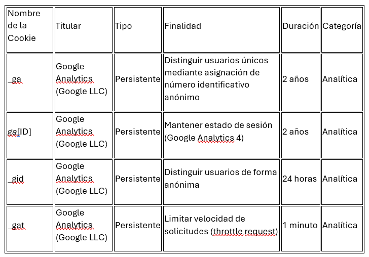 4.1. Cookies de Google Analytics (Tercero)